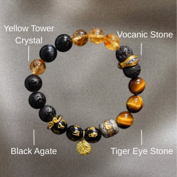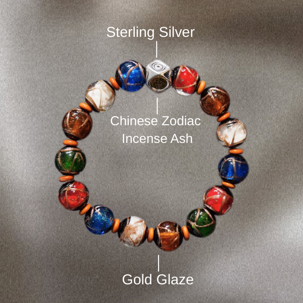 Wealth & Prosperity|Gold Glaze Zodiac Incense Ash Energy Bracelet