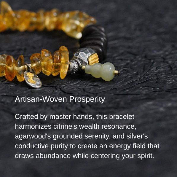 The Light of Prosperity Bracelet is a beacon of abundance and inner power. Citrine awakens your confidence and magnetizes success, while agarwood roots your energy in calm resilience. Silver amplifies their harmony, guiding you to act with clarity and grace. Together, they form a radiant field of wealth, peace, and purpose—reminding you that prosperity is not just gained, but lived, when your heart glows with light and your spirit moves with strength.